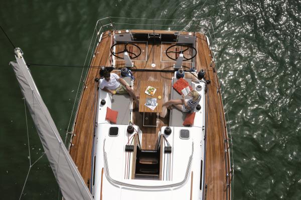 Innovation and Technology: the lines of the hulls have been developed using the latest technologies for the perfect flow of the equipment, centralized lock points for better handling of the Genoa for optimal flow, winches within easy reach of the wheel and the furling drum integrated into the deck.
